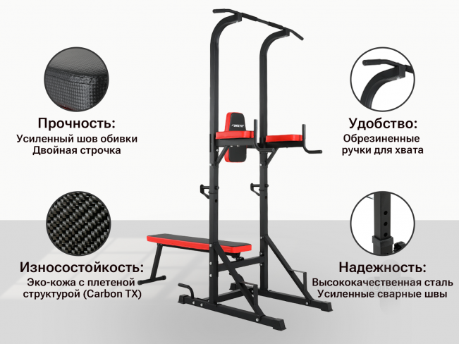 Турник-пресс-брусья со скамьей UNIX Fit POWER TOWER 120P